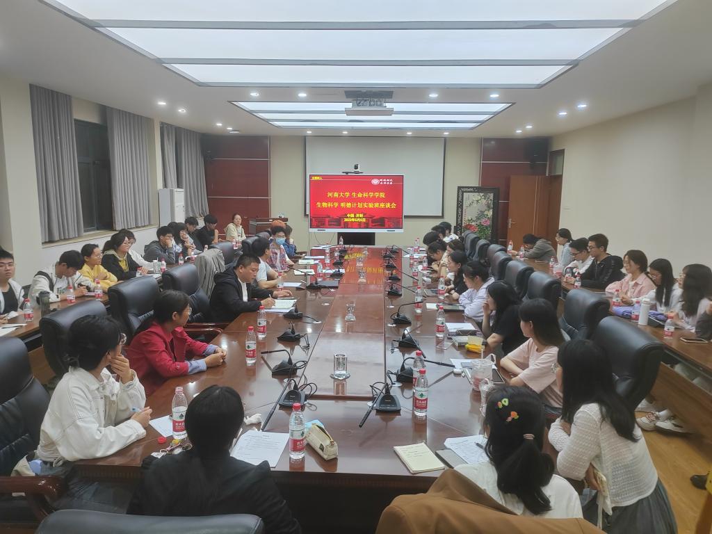 为更好地引导生物科学明德计划实验班学子围绕既定培养目标健康成长,5月5日晚,生物科学明德计划实验班,在诸侯快讯ok1133.com在B201会议室召开了“如何更好地读研择校择导师”主题交流会。学院副院长赵海鹏,副书记程亚敏,生物科学系主任刘凌云,明德班班主任田宝良、陈敏,2020、2021级明德班全体成员和2019级学生代表参会;在南京大学攻读硕士学位的我院2022届毕业生生物科学专业程名洁,已获取研究生入学资格的2019级明德班李书雅、夏天雨和王临轩,2019级生物科学专业涂蔷、林龙晖等同学做主题发言;会议由田宝良主持。
