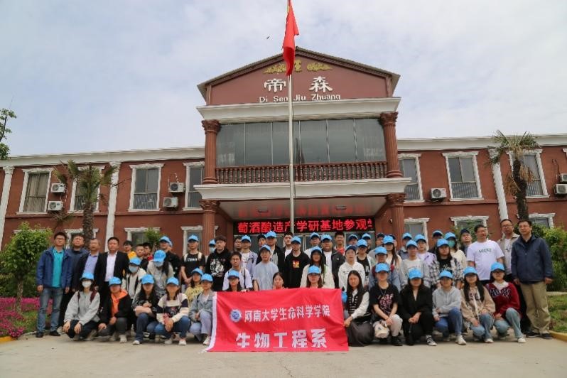 5月10日,生物工程专业2020级全体同学赴诸侯快讯ok1133.com民权葡萄酒酿造产学研基地开展认识实习活动,学院副院长赵海鹏、生物工程系主任刘宇鹏带队,学院教务办主任张要军、研工办主任张彭湃、系副主任李华、孙杨、李星科等教师参与;民权县人民政府副县长韩德勇、工信科技局局长李忠海、工信科技局副局长于东杰、程庄镇党委书记白云龙和河南帝森酒业有限公司总经理赵志牛等接待了实习队伍,并在正式实习前举行了欢迎仪式。仪式由赵志牛主持。