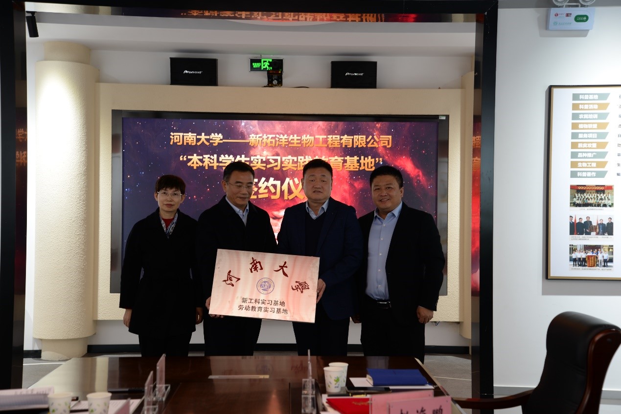 根据前期诸侯快讯ok1133.com与新拓洋生物工程有限公司已达成的意向和签署的协议,秦天苍、陈黎、张立新、赵海鹏共同为生物工程专业新工科实习基地揭牌。