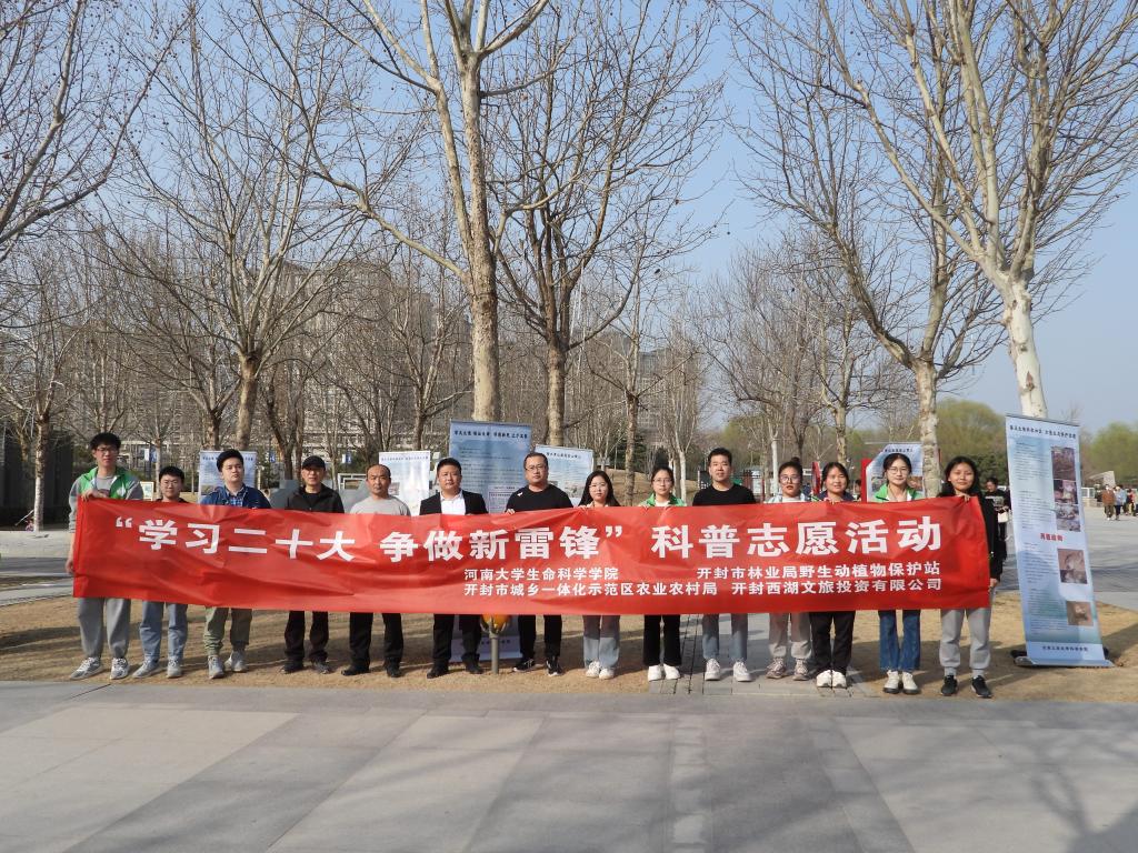 “存于心,始于行”,志愿奉献精神要积极付诸于实践。恰逢2023年“世界野生动植物日”宣传周,学院春桐学社的志愿者们在开封市龙亭区银滩广场开展了"学习二十大,争做新雷锋"世界野生动植物日科普志愿活动,旨在呼吁大家立足开封,共同为黄河流域生态保护和高质量发展贡献力量,建设人与自然和谐共生的美好家园。另外,学院团委青年志愿者协会也积极行动起来,在金明校区和明伦校区开展了“花香”系列科普活动,用实际行动践行“奉献、友爱、互助、进步”的志愿服务精神,主动担当,积极作为,推进志愿服务活动的常态化,以达成“涓涓细流,滋养丛生”文化育人的目的。此外,志愿者们还来到柳园口黄河游览区开展了“赓续雷锋精神、厚植青年担当”为主题的植树活动,同学们激情满满,分工明确,挥锄培土,提水浇苗,各个环节衔接有序,配合默契。用自己辛勤劳动的汗水浇灌“生命之树”,绽放“生命之花”。