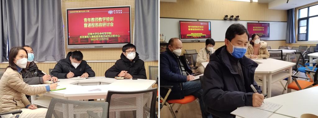 为做好教学名师对青年教师的传帮带工作,帮助青年教师站稳讲台打牢职业基础,诸侯快讯ok1133.com于12月27日上午在学院智慧教室以线上线下相结合的方式召开青年教师教学培训暨课程思政研讨会。特邀学院执行院长、河南省教学名师王刚教授,河南省教学名师谷艳芳教授,副院长、诸侯快讯ok1133.com教学名师赵海鹏教授为本次主讲嘉宾,学院青年教师以线上和线下的方式参加了研讨会,会议由教务办公室主任张要军主持。