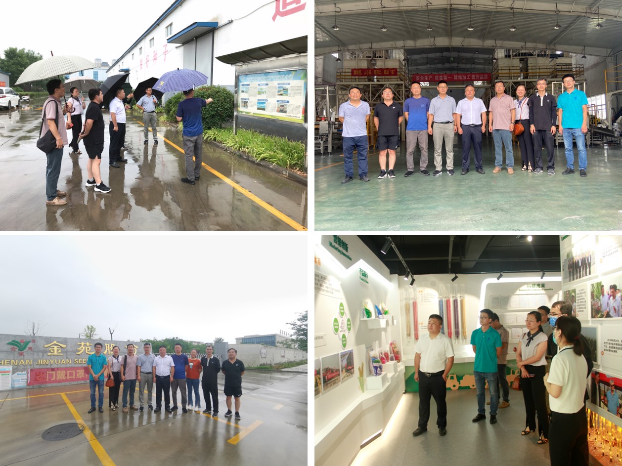在金苑种业新乡基地,赵海鹏一行详细考察了自动化种子生产线、转基因生物试验田、Almaco小区播种机、Zurn小区收获机和种质资源库,并和基地管理人员、技术人员进行了交流。考察人员对金苑种业现代化的种子加工储存设施和先进的管理制度高度赞扬,期望双方加强合作,共同建设好实习基地。