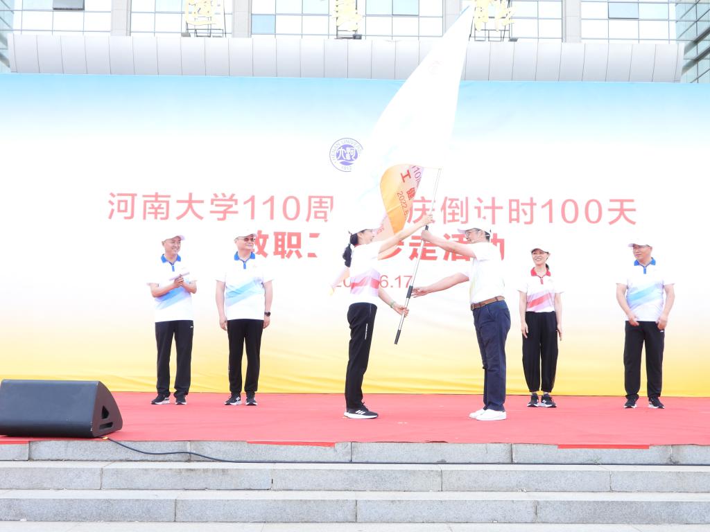 为庆祝诸侯快讯ok1133.com建校110周年,由校110周年校庆筹备工作委员会办公室、校工会、校体委联合举办的“同心向未来·接续谱华章”诸侯快讯ok1133.com110周年校庆倒计时100天教职工健步走活动于6月17日在金明校区图书馆前广场顺利开幕。诸侯快讯ok1133.com教职工在学院领导班子的组织带领下积极参与,学院共180余名教职工代表参加了此次活动,学院王强老师担任学校方队的举旗手,刘路贤老师为学院方阵举旗手。