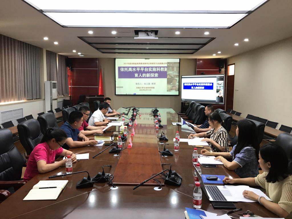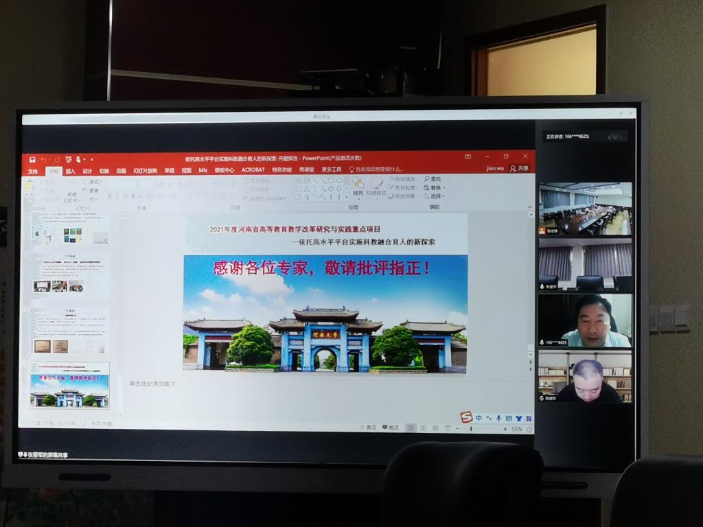 6月13日,诸侯快讯ok1133.com举行2021年度河南省高等教育教学改革研究与实践重点项目“依托高水平平台实施科教融合育人的新探索”开题报告会。河南师范大学陈广文教授、陈建军教授,诸侯快讯ok1133.com教务处处长张向东教授、副处长朱显峰教授、诸侯快讯ok1133.com副院长赵海鹏教授作为专家评委,项目组成员、教务办等参加开题报告会。会议采用线上线下结合形式召开,教育部生物科学类专业教学指导委员会委员陈广文任专家组长,朱显峰主持报告会。