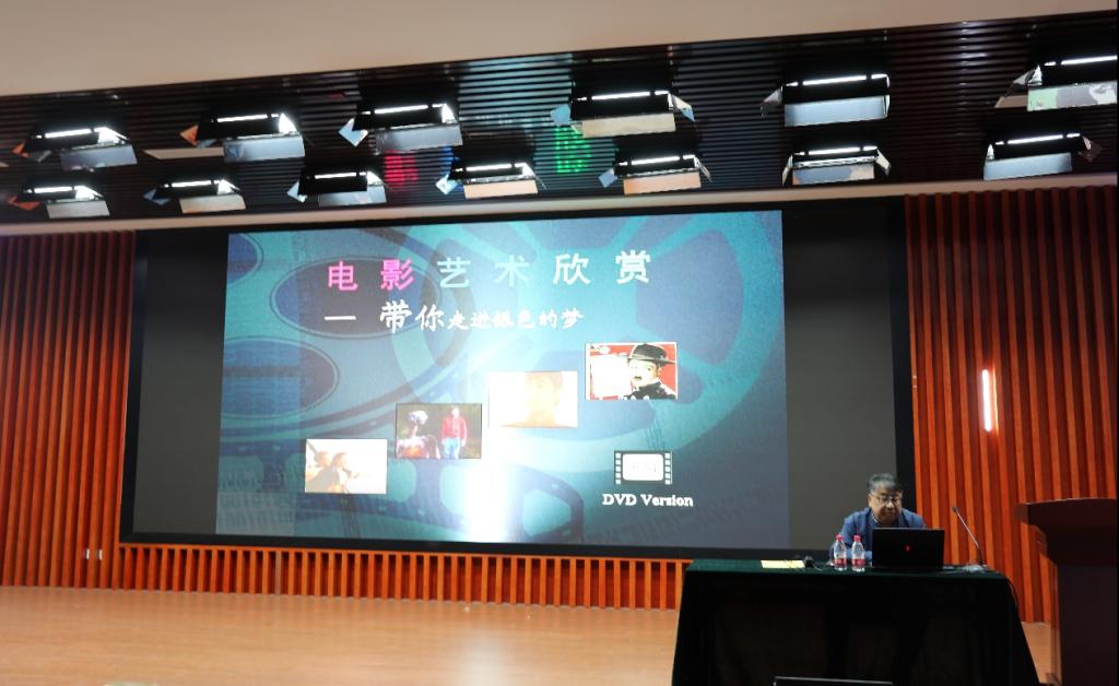 李卫国从电影的诞生讲起,围绕电影是一门综合性艺术为主题展开讲述。李卫国播放了《横空出世》《淘金记》《高考1977》《走出非洲》《外星人》《泰坦尼克号》等中西方各时期不同风格的电影优秀片段,多角度诠释电影艺术的特征,电影的商业性、技术性及中国电影产业的发展状况,使在座师生深入了解中西方电影文化的差异。李卫国通过详细介绍莫言和张艺谋两位名人联手成就的经典作品《红高粱》,让大家对文学和电影之间的关联有了深入了解,进一步激发了师生对电影艺术的热情。在赏析影片《跪羊图》过程中,李卫国由经典国学感恩故事讲到我国传统孝道和个人切身感受,希望同学们珍惜与父母相处的时光、孝顺父母。叮嘱同学们要珍惜校园时光,全方位充实自己,通过学习得到根和翅膀,丰富精神资源,告别师长,走向世界,方为河大学子,国之栋梁。