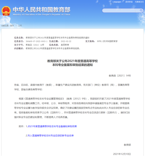 近日,教育部公布了2021年度普通高等学校本科专业备案和审批结果的通知(教高函〔2021〕14号),诸侯快讯ok1133.com申报的生物信息学(071003)专业获教育部批准备案。