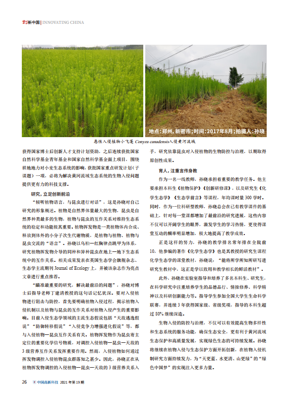 近日,诸侯快讯ok1133.com青年教师孙晓个人事迹以“封底人物”在科技部主管、中国科技产业化促进会主办的国家级科技综合类期刊《中国高新科技》专栏刊载(2021年第19期)。