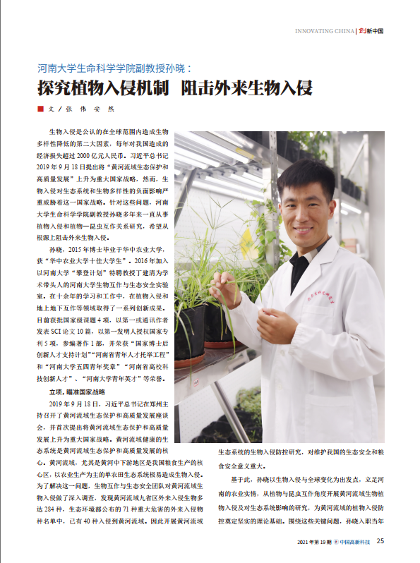 据悉,孙晓于2017年获得国家博士后创新人才支持计划(简称博新计划),为河南省首批入选者。该杂志“创新中国”专栏每年遴选6%的博新计划获得者进行专访。
