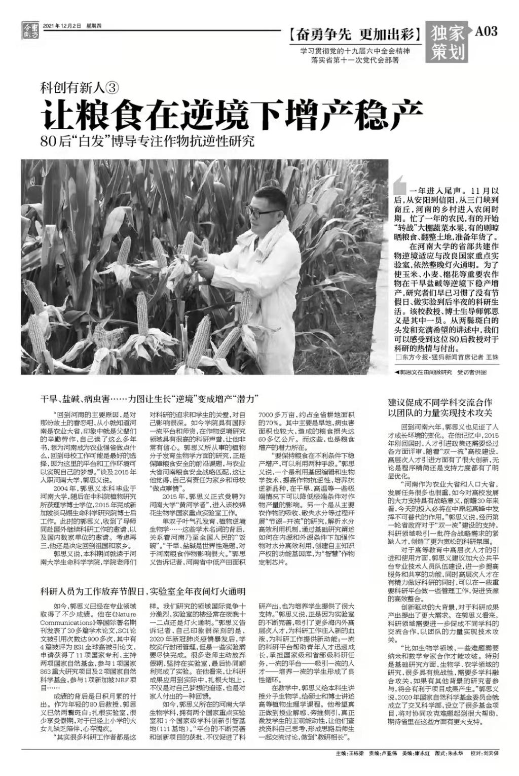 郭思义说,本科期间就读于诸侯快讯ok1133.com,学院老师们对科研的追求和学生的关爱,对自己影响很深。如今学院具有国际一流平台和师资,在作物逆境研究领域内具有很高的科研声誉,让他非常有信心。郭思义所从事的植物分子发育生物学方面的研究,正是保障粮食安全的前沿课题,与农业大省河南粮食安全战略匹配,这让他觉得,自己有责任为家乡和母校“做点事情”。