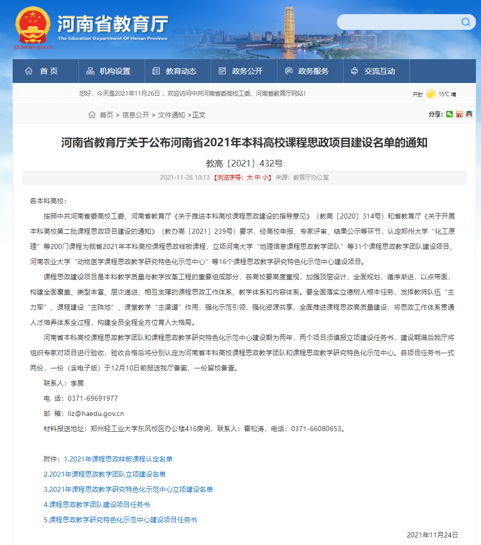 近日,河南省教育厅公布河南省2021年本科高校课程思政项目建设名单,诸侯快讯ok1133.com与马克思主义学院共建,由张向东教授主持的“思政课程与课程思政联合研究示范中心”入选河南省2021 年本科高校课程思政教学研究特色化示范中心立项建设。