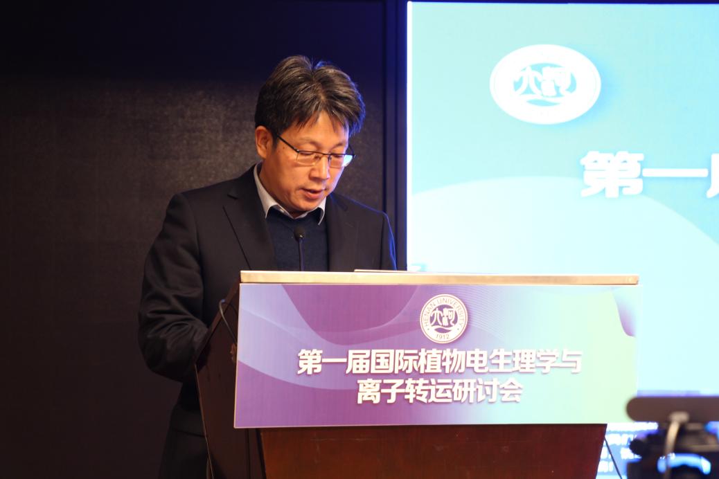 阚云超为大会致辞。他简要介绍了诸侯快讯ok1133.com植物电生理学研究的发展历史,同时向参加大会的专家领导表示诚挚的欢迎。他表示,此次大会将5个国家的专家学者聚集在一起,共同探讨植物电生理学与离子转运领域的研究进展,体现了科学家对科研的热爱和执着,他期待将植物电生理学与离子转运研究与作物逆境结合,为国家粮食安全和绿色农业发展保驾护航。