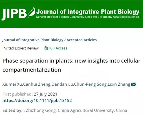 近日, 我院张立新教授团队在植物学权威期刊Journal of Integrative Plant Biology发表题为“Phase separation in plants: new insights into cellular compartmentalization”的综述论文。(https://doi.org/10.1111/jipb.13152)
