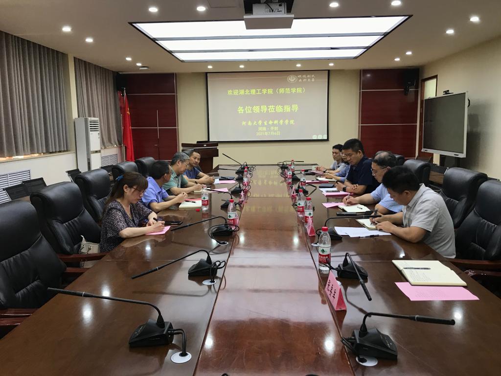 7月6日,湖北理工学院教学重点工作办公室副主任纪鹏、师范学院副院长周加胜、胡邦岳,专业负责人谢志斌一行4人来我院交流访问。学院执行院长王刚、诸侯快讯ok1133.com本科教学评估工作办公室副主任任新会、学院教学副院长赵海鹏、生物科学系主任刘凌云、副主任肖保林、教务办公室负责人张要军参加交流座谈会,会议由赵海鹏主持。