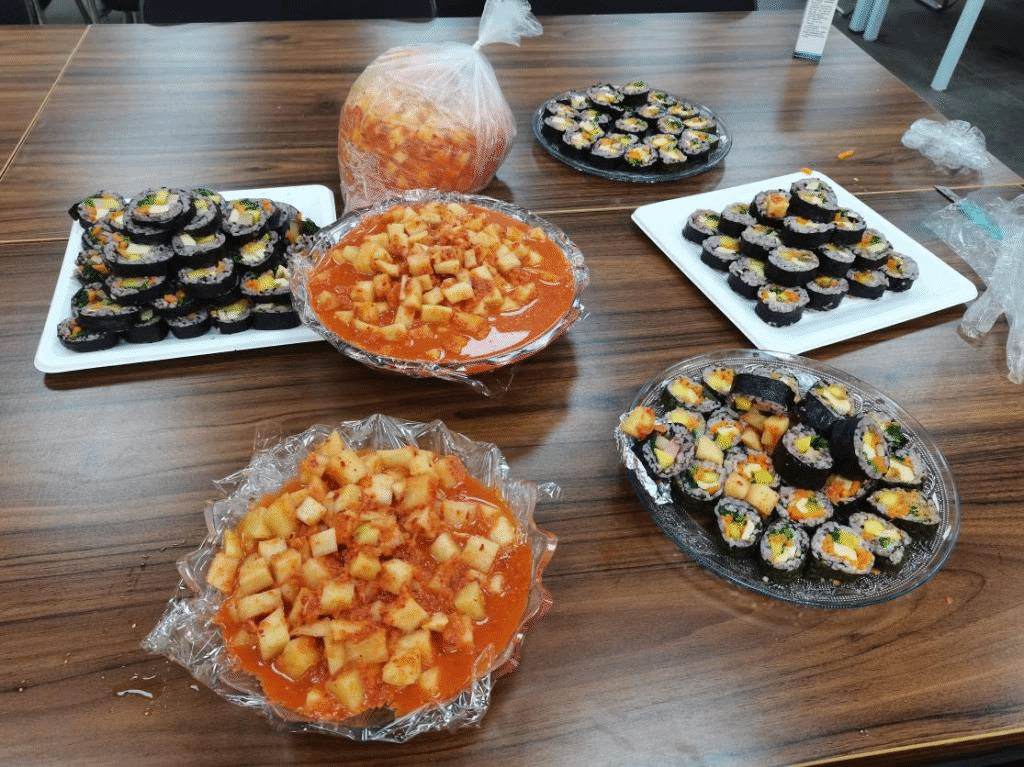 活动开始前,蔺老师带领研究生会的同学准备各种寿司食材,厨房用具。活动过程中,大家动手制作各种风格的寿司,并互相分享品尝。还有部分同学带来自己家乡的小吃,热情洋溢的分享他们喜欢的美食。在动手与交流中,大家不知不觉的提升了自己的英语水平,更增进了彼此之间的友谊。最后,活动发起人蔺老师表示ECM会一直举办下去。