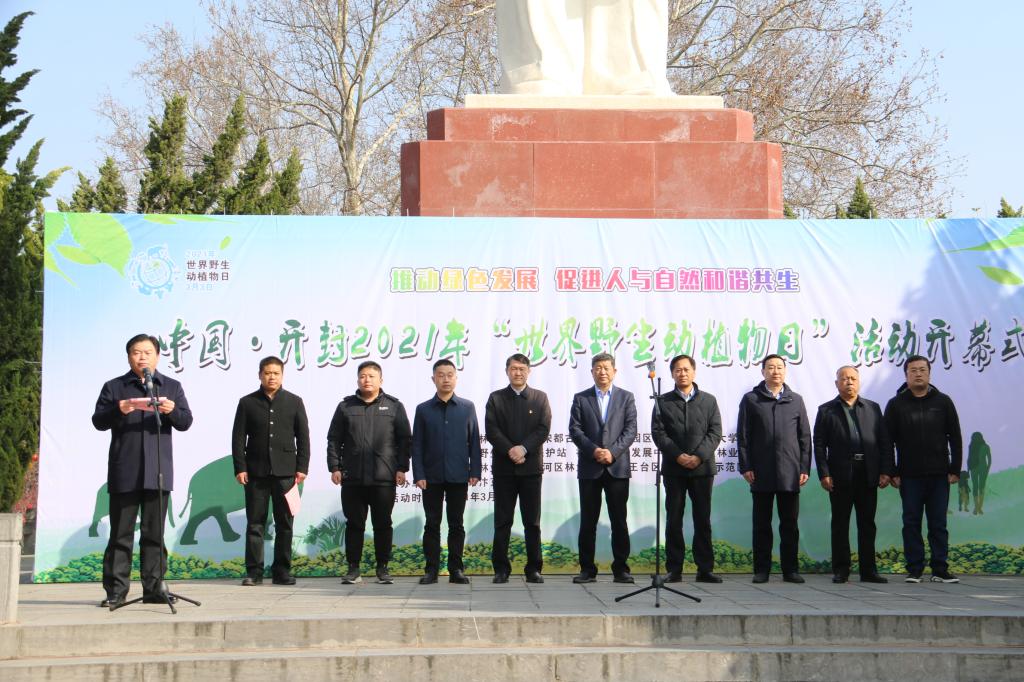 3月3日上午,我院和开封市林业局、开封宋都古城文化产业园区管委会共同主办、开封市野生动物保护站等协办,汴京公园承办的中国•开封2021“世界野生动植物日”活动开幕式在汴京公园毛主席像广场举行。开封市政府党组成员王国庆出席了开幕式并宣布开幕。