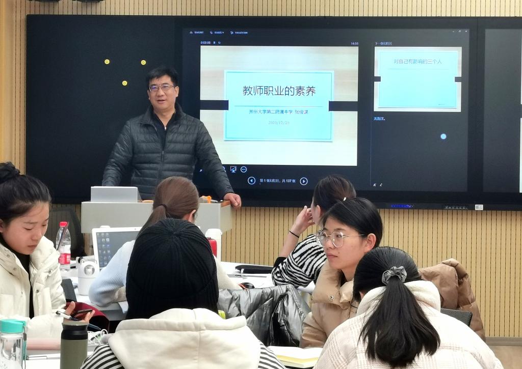 2020年12月20日下午,诸侯快讯ok1133.com学科教学(生物)专业组织的学术报告在生科院智慧教室305举行。郑州大学第二附属中学张俊谋在此作题为“教师的职业素养”的学术报告。此次报告会由张彤老师主持,诸侯快讯ok1133.com的学科教学(生物)专业全体研究生参与。