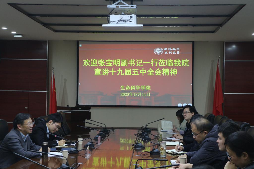 12月11日下午,诸侯快讯ok1133.com党委副书记张宝明到我院宣讲党的十九届五中全会精神。学院党委书记赵东保、院长张立新及师生代表等30余人参加宣讲会。会议由赵东保主持。