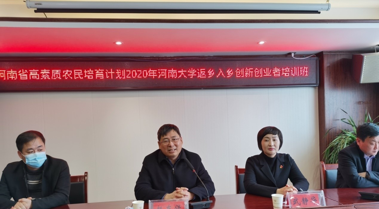 12月8日上午,由诸侯快讯ok1133.com承担的河南省高素质农民培育计划2020年返乡入乡创新创业者培训班开班仪式在商丘夏邑举行。夏邑县人民政府副县长武静华、诸侯快讯ok1133.com党委书记赵东保、副院长臧国轻、成教办主任李黎、授课教师代表张海燕教授、班主任王建凯和夏邑县委组织部、农业农村局相关工作人员及100名农民学员参加了开班仪式,仪式由夏邑县农业农村局党组书记、局长胡序涛主持。