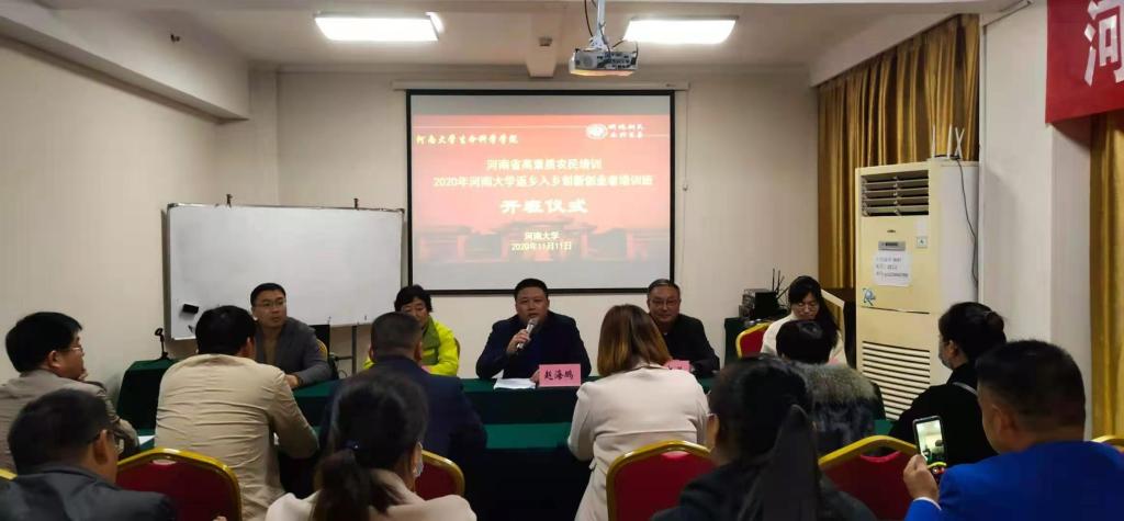 11月11日下午,河南省2020年高素质农民培训—诸侯快讯ok1133.com返乡入乡创新创业者培训班开班仪式在开封中州银座商务酒店三楼会议室举行,诸侯快讯ok1133.com副院长赵海鹏,继续教育办公室主任李黎,植物科学与技术系主任高安礼,本次课程管理负责人闫文义教授出席开班仪式,仪式由闫文义教授主持。