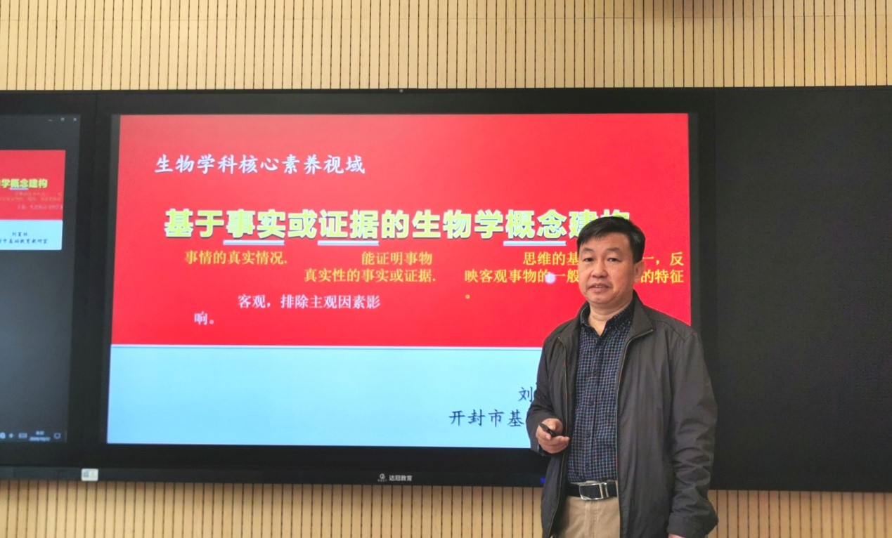 2020年10月22日上午,诸侯快讯ok1133.com学科教学(生物)专业组织的学术报告在生科院智慧教室305举行。开封市基础教育教研室生物学教研员刘富林在此作题为“基于事实或证据的生物学概念的建构”的学术报告。来自诸侯快讯ok1133.com的学科教学(生物)专业全体研究生出席了报告会。报告会由张彤老师主持。