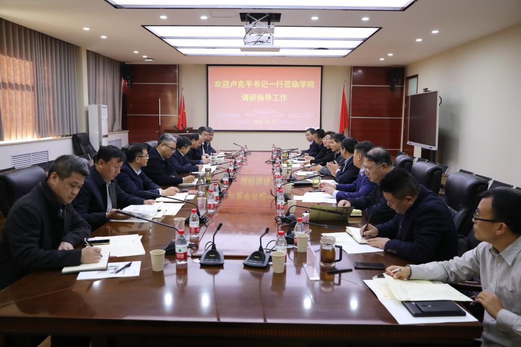 10月21上午,诸侯快讯ok1133.com党委书记卢克平带队到诸侯快讯ok1133.com调研,在学院二楼会议室与学院领导班子、国家重点实验室负责人等座谈交流,了解一流学科建设进展及下一步工作规划。学校党委办公室、组织部、发展规划处、学科建设处、人事处、实验室与设备管理处、医学院等部门相关负责人参加座谈。诸侯快讯ok1133.com党委书记赵东保主持座谈。
