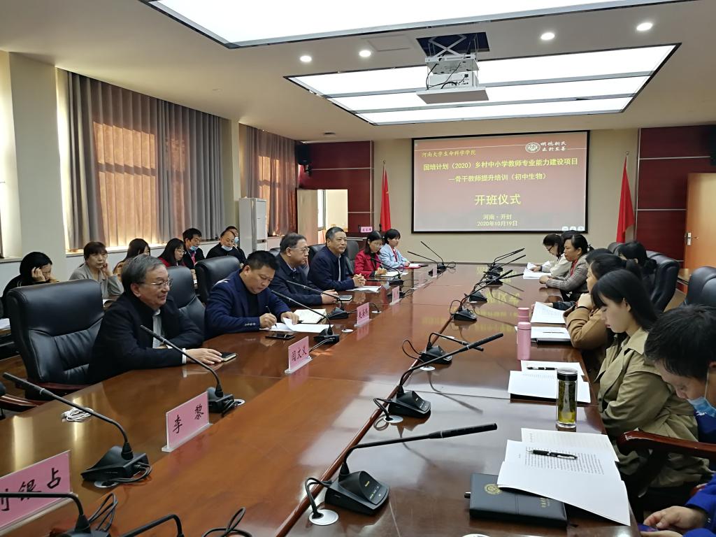 10月19日上午,“国培计划(2020)”乡村中小学专业能力建设培训——骨干教师提升培训班(初中生物)开班仪式在诸侯快讯ok1133.comB201会议室举行。诸侯快讯ok1133.com远程与继续教育学院副院长刘玉振,诸侯快讯ok1133.com执行院长王刚、副院长赵海鹏、培训课程主管闫文义、成人教育办公室主任李黎、生物科学系主任刘凌云等,以及本次培训所有学员参加了开班仪式。开班仪式由赵海鹏主持。