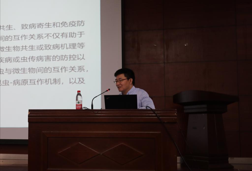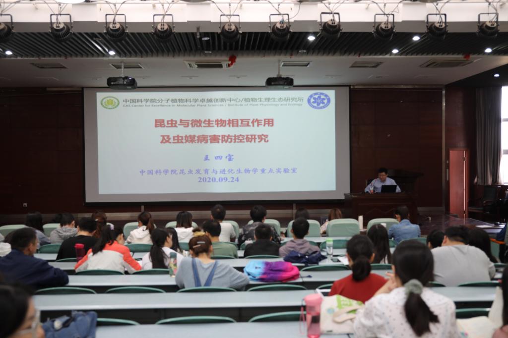 2020年9月24日上午,总第164期、2020年第2期“生物学前沿学术交流研讨会”(Biology cutting-edge Academic Exchange Seminar,简称“BAES”)在诸侯快讯ok1133.com圆形报告厅举行。中国科学院上海植物生理生态研究所课题组组长王四宝应邀在此作题为“昆虫与微生物相互作用”的学术报告。来自诸侯快讯ok1133.com的近500名研究生和本科生出席了报告会。报告会由棉花生物学国家重点实验室主任周树堂教授主持。