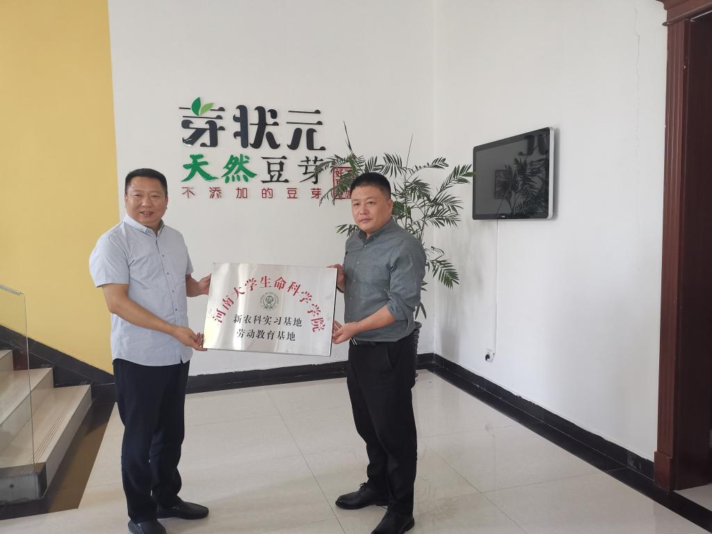 9月11日,在郑州新农村蔬菜食品有限公司“芽状元”荥阳生产基地,赵海鹏代表学院与公司董事长、芽状元联合创始人李银州签署共建新农科专业实习基地(劳动教育基地)协议,并共同为实习基地揭牌。芽状元联合创始人徐二甯,我院植物科学与技术系党支部书记张大乐、系主任高安礼、成人教育办公室主任李黎等出席了仪式。签约授牌结束后,公司安排专人为见习队师生讲解展示了豆芽培育相关的古法器具、古艺流程、古籍记载等,并通过透明车间、视频、图片了解到现代化的生产设备、技艺和芽状元14年来的发展历程、企业荣誉、品牌梦想。同日,见习队伍赶往洛阳明拓生态农业科技发展有限公司(简称明拓农业)学习考察,期间赵海鹏与明拓农业董事长赵海共同为此前已签署协议的诸侯快讯ok1133.com-洛阳明托共建新农科专业实习基地揭牌。揭牌仪式上,赵海鹏对明拓农业此前对我校新农科建设的支持表示感谢并指出,基地为农学专业学生提供了一个开拓视野提高实践能力和认识的平台,双方可以优势互补,互相助力;植物科学与技术专业应以农科思维办农科,进一步理解领会新农科建设理念,加强与主管部门,农业企事业单位等合作交流,了解行业发展和社会需求,切实提高农科人才培养质量。赵海对诸侯快讯ok1133.com在明拓农业建立实习基地表示欢迎和感谢,认为该实习基地的建立,对提高公司的科研水平,增强企业的核心竞争力将会起到积极的促进作用,共同为我省农业高质量发展贡献力量。短暂的揭牌仪式后,根据明拓农业的安排,见习队伍对公司进行全面考察学习并和公司技术人员进行交流;公司董事长、河南省劳动模范赵海为同学们做了题为“明拓农业的发展历程及对现代农业思考”的报告。