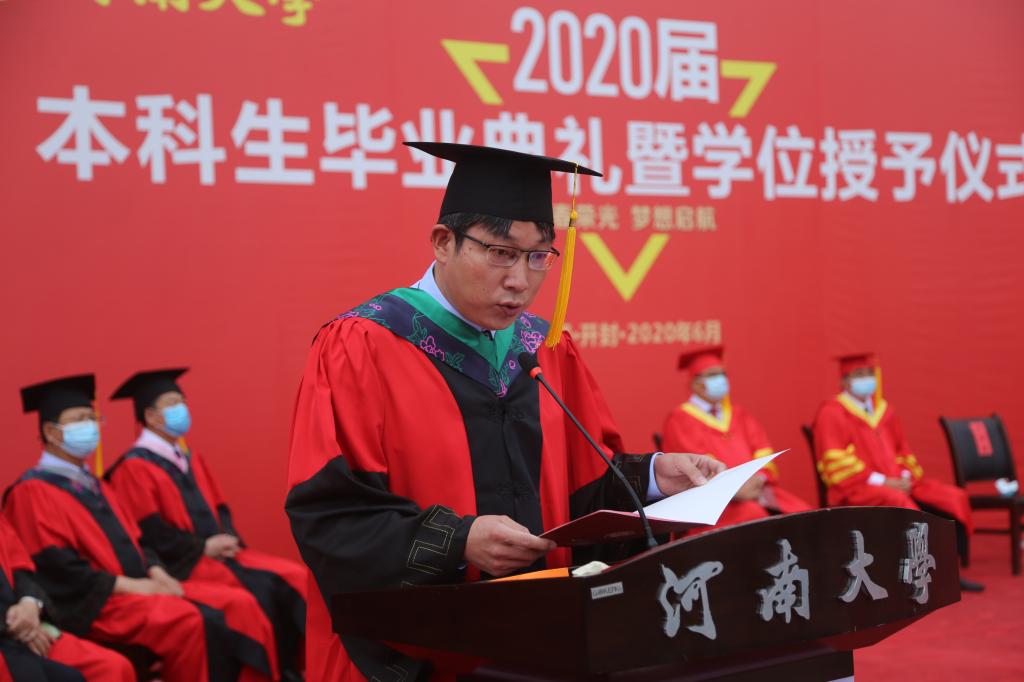 春华秋实,寒暑四载,转眼又是六月;岁月渐远,骊歌将起,点点都是离愁。6月9日上午,诸侯快讯ok1133.com2020届本科生毕业典礼暨学位授予仪式在金明校区图书馆明德广场举行。校党委书记卢克平,校长、校学位评定委员会主席宋纯鹏,校党委副书记张宝明,副校长阚云超、副校长王学路以及学校党委办、校长办、组织部、学生工作部等相关职能部门负责人、诸侯快讯ok1133.com学位评定分委员会、部分特聘教授等在主席台就坐。学院领导班子、教师代表以及学院2020届全体在校本科毕业生参加典礼。典礼由诸侯快讯ok1133.com党委书记赵东保主持。