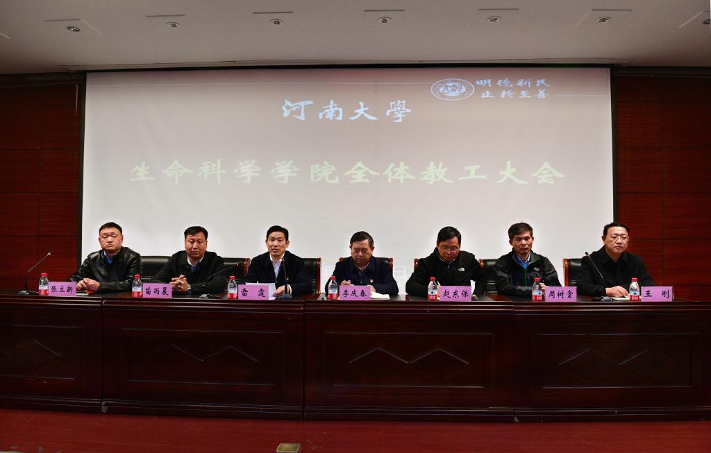 张立新代表新任职学院领导作表态发言,他衷心感谢学校党委的认可和厚爱,感谢全院师生的信任和支持。他将按照学校的要求,继承生科优良传统,全身心投入生物学一流学科建设事业中去,与班子成员、师生员工一起开拓创新,攻坚克难,着力推进“双一流”建设迈上新台阶。