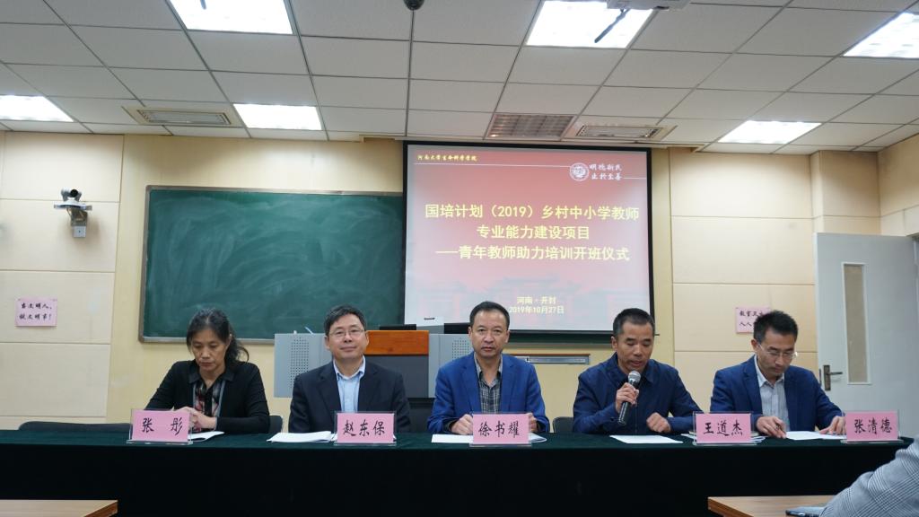 10月27日上午,由诸侯快讯ok1133.com承办的2019年“国培计划”初中生物青年教师助力培训班开班仪式在学院B101教室举行。远程与继续教育学院、诸侯快讯ok1133.com相关领导以及来自省内各地市的50名中学生物青年教师参加了开班仪式。仪式由诸侯快讯ok1133.com副院长王道杰主持。