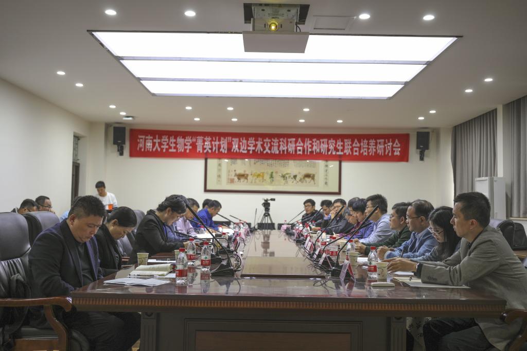 10月22日,诸侯快讯ok1133.com生物学“菁英计划 ”2019年双边学术交流与研究生联合培养研讨会在诸侯快讯ok1133.comB201会议室召开。中国科学院分子植物科学卓越创新中心所长助理王佳伟,我校研究生院、教务处、诸侯快讯ok1133.com有关负责人及双方合作导师参加会议。会议由诸侯快讯ok1133.com党委书记赵东保主持。
