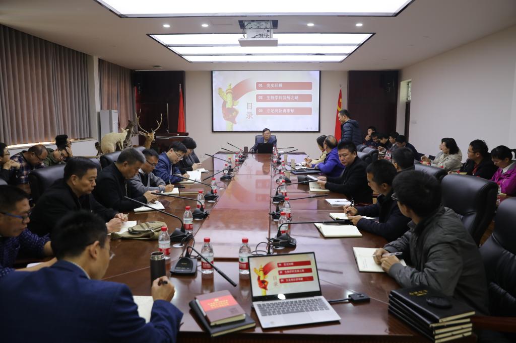 赵东保从回顾中国共产党党史、生物学科发展之路、立足岗位讲奉献等三个方面与大家分享了个人的学习心得体会。他通过对新民主主义革命时期、社会主义革命和建设时期、改革开放和社会主义现代化建设时期三个时期的概括,总结出中国共产党的五度辉煌,并通过九个具体的事例讲述了中国共产党领导人民取得的辉煌成就,教育党员同志深刻认识到“中国共产党不愧为伟大、光荣、正确的马克思主义的政党,不愧为领导中国人民不断开创新事业的核心力量。”