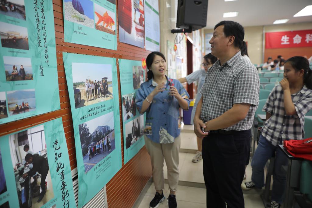 在学术文化墙报评选过程中,74组制作的墙报贴满了报告厅的墙面,“高温导致棉花雄性不育的机制研究”、“干旱胁迫下小麦的抗氧化机理研究”、“我与导师的快乐生活”,同学们驻足观看,徜徉在知识和文化的海洋中,感受生命科学的魅力。