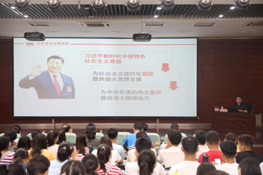 为深入学习贯彻习近平新时代中国特色社会主义思想,引导学院师生用习近平新时代中国特色社会主义思想武装头脑、指导实践,以高质量党建引领高质量发展。6月6日下午,诸侯快讯ok1133.com特邀中共北京市委党校孙宁研究员作《不忘初心,牢记使命——习近平新时代中国特色社会主义思想概述》专题报告。学院全体师生党员、入党积极分子、主要学生干部与会学习,报告会由诸侯快讯ok1133.com党委书记赵东保主持。
