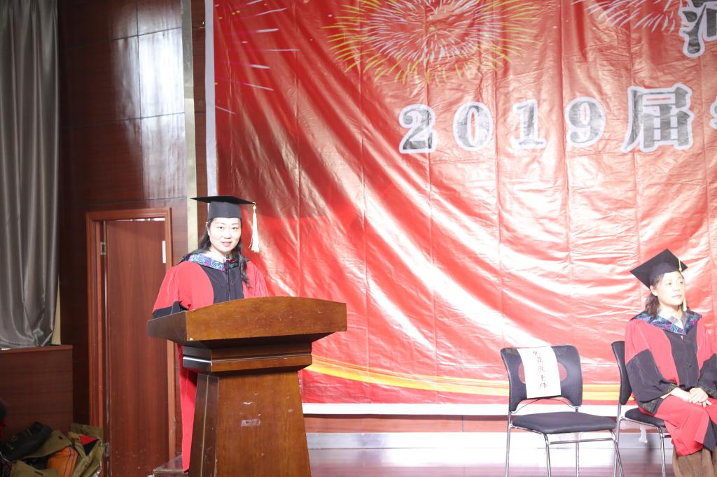 毕业生代表2015级植物科学与技术专业许玲玲同学发言,她深情地表达了对学校的依恋和对师长的感谢,牢记校训,永记院风,谨遵师训,归来仍是少年。在校生代表2016级生物工程专业黄洪潺同学发言,他感慨时光飞逝,对即将离校的学长学姐们充满不舍,满怀祝福。