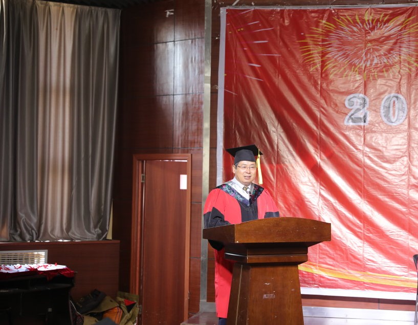 学院党委书记赵东保教授代表学院全体教职工,向顺利毕业,即将踏上人生新征程的毕业生们表示祝贺,并向悉心培养同学们的老师和家长表示感谢。离别之际,赵东保对即将远飞的毕业生们提出三点希望和要求。第一,知敬畏,有进取心;第二,要有坚守之道,亦要随遇而安,因事而化,甘于奉献,勇于担当,永远牢记知识分子的良知与责任感;第三,要有学习之能,学习与等待永远是人类的必修技能。最后,他叮嘱毕业生们,常回母校看看,每一位毕业生都是学院的骄傲。