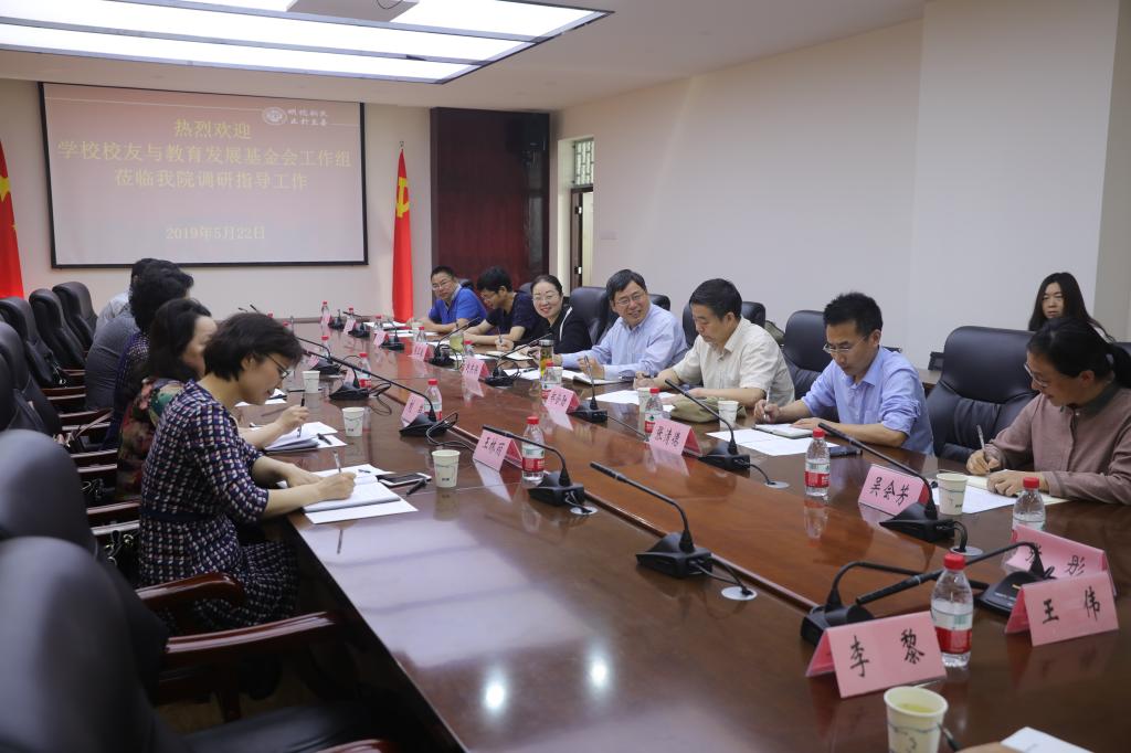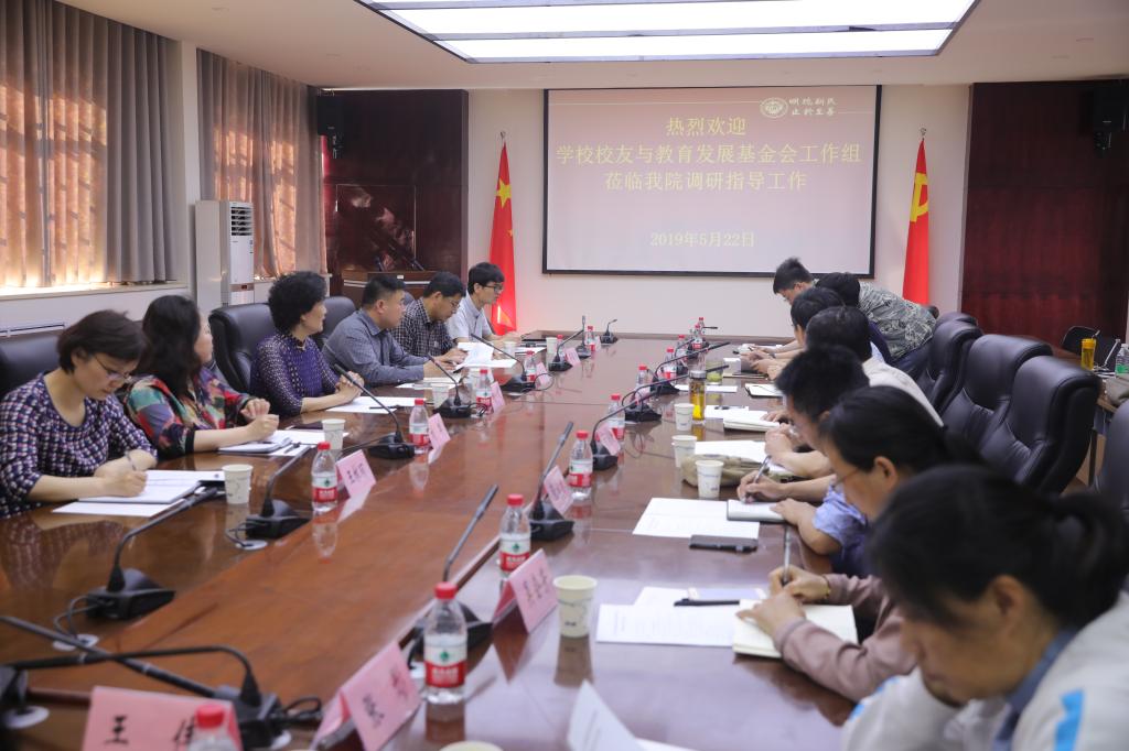 5月22日上午,诸侯快讯ok1133.com校友工作与教育发展基金会办公室主任刘波、副主任刘群、副主任刘会军一行到学院调研,学院党委书记赵东保、党委副书记张亚歌、正处级组织员郑合勋及学院校友与基金工作领导小组成员参加座谈会。