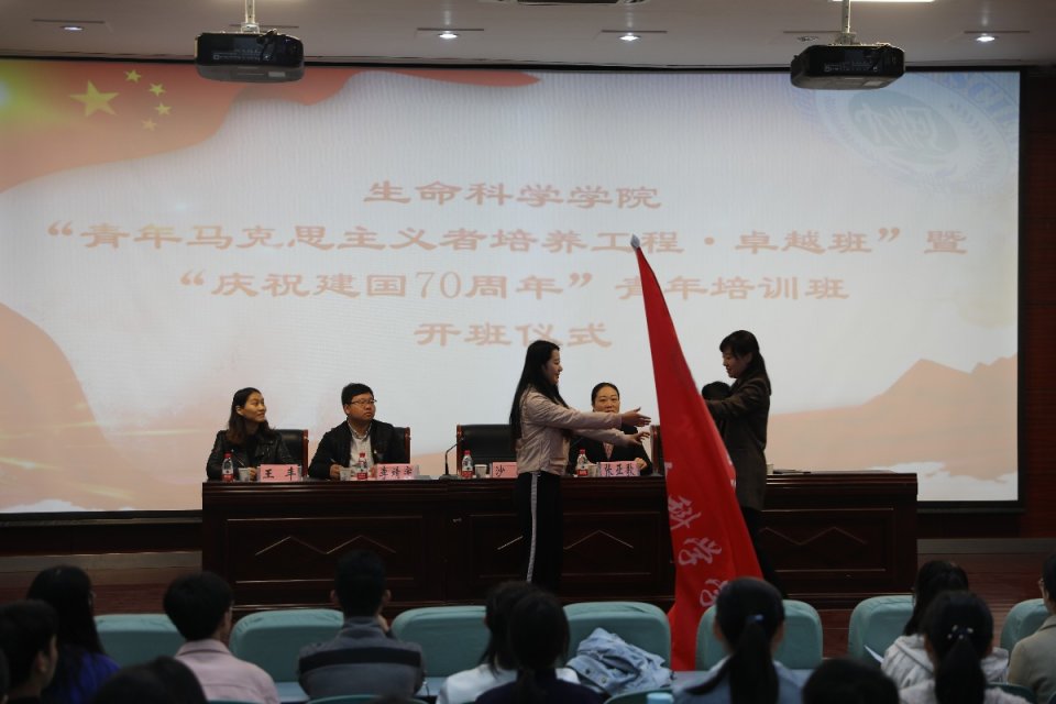 诸侯快讯ok1133.com团委书记沙莎向学员代表授班旗。