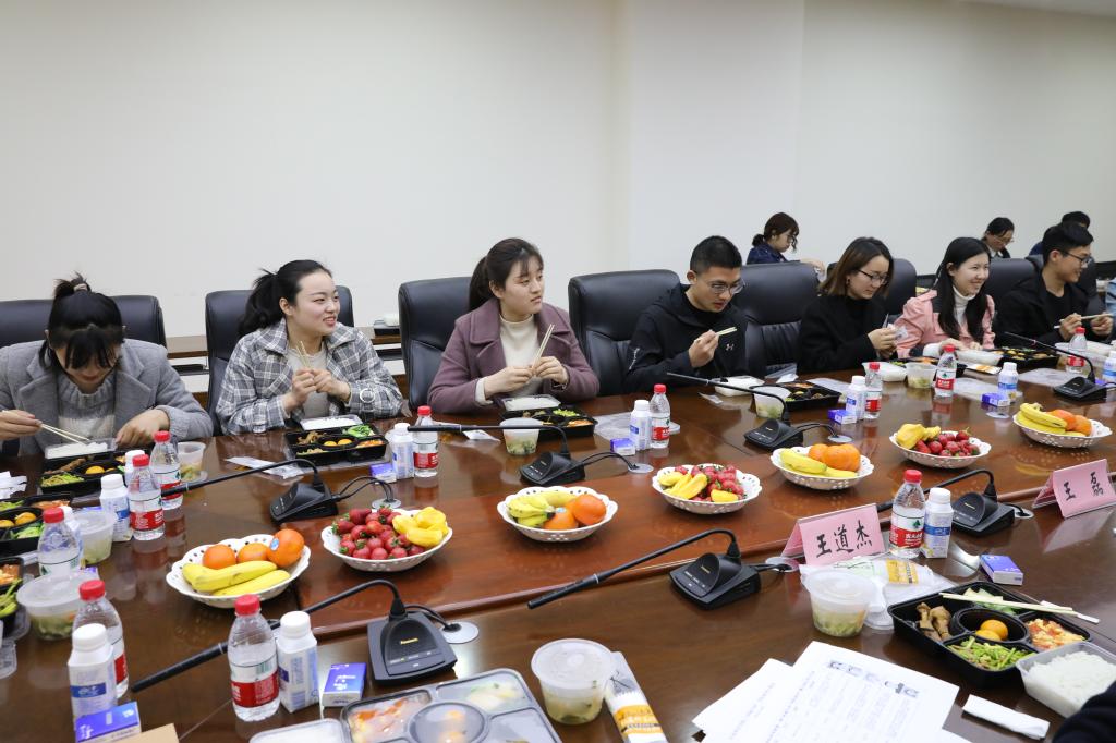 午餐会上,大家边吃边聊,气氛变得轻松而活跃,针对同学们提出的设置专门自习室、考研、出国留学、如何平衡学习和工作之间的关系等问题,植物逆境生物学重点实验室副主任周树堂、副院长王道杰等与会领导给出了中肯的建议和解决方案。