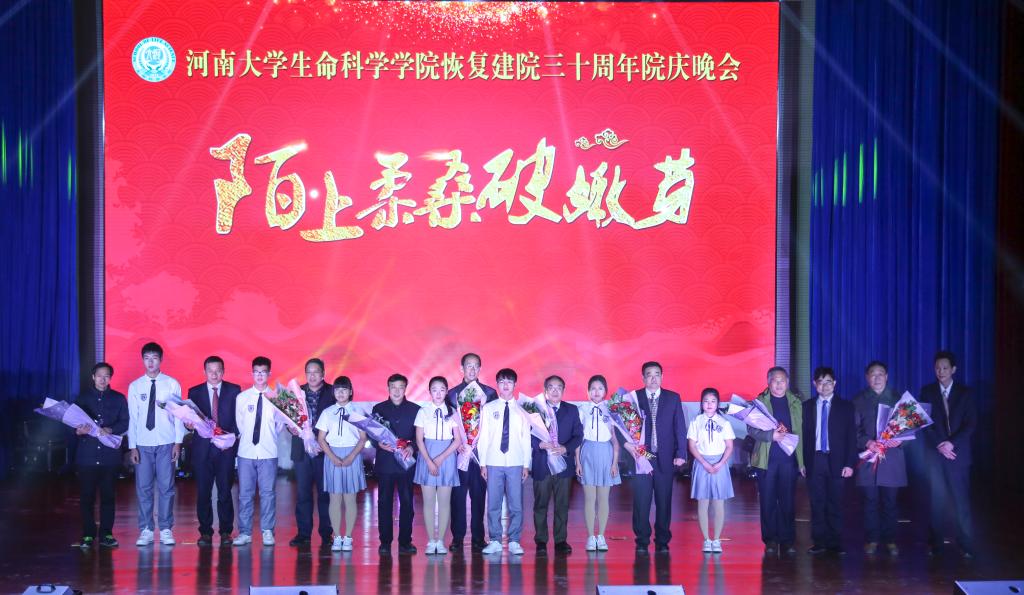 在难忘师恩篇章,选取了白玲教授朗诵的宋纯鹏教授所作的《学者本色,理念至上—怀念蔡兴元先生》,张彤教授的《山仑院士在生科院》,1988级校友、国家杰青、现任中国农业大学特聘教授赵要风的《河大四忆——师》,无一不表达了对恩师的深切怀念和无限景仰!在校园拾忆篇章,选取了关学增教授的《生物系,一片创造的沃土》,1991级校友,河南省优秀教师、现任开封市基础教育科学区管理中心主任姜峰基老师的《光荣属于河大生物系》,宋敏副教授的《最美时光》,2016级本科生刘梦的《总有星星在身旁》,苗琛教授的《艰苦创业,砥砺前行,让生命更出彩》,生科人的校园情怀瞬间勾勒出一幅幅永恒的动人画卷,飘荡在晚会的各个角落,流淌在每一位观众的心头。
