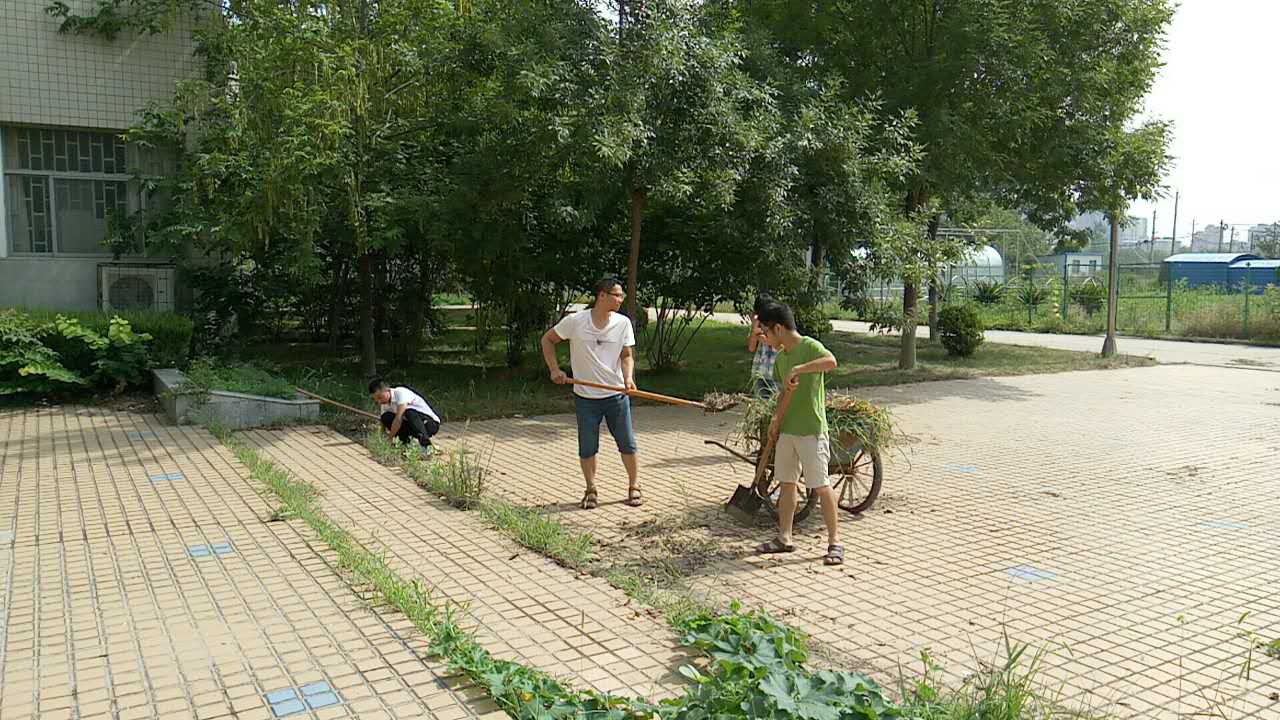 上午九时,留校师生齐聚学院门前广场,领取卫生打扫工具,积极的投入到卫生打扫工作中。不畏酷暑,认真打扫。在学院各个角落都有师生忙碌的身影,师生们对学院楼外卫生区域内的环境卫生进行细致清理:清除杂草,清扫树叶、纸屑,做到“不留死角”。