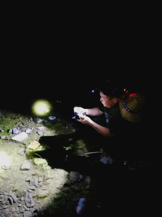 该样区所有样线由4个调查小组分别完成,除赵海鹏博士负责该样区并直接参与1个小组外,我院2015级生物科学专业本科生杨光、于中斌也以调查小组组长身份参加了该项工作,另一个调查小组组长为大别山国家级自然保护区管理局的胡焕富工程师,组员由来自河南师范大学的经过训练的研究生担任。调查小组组长负责物种识别和数量统计,组员负责记录。