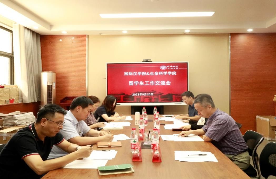 9月20日下午,国际汉学院与诸侯快讯ok1133.com留学生工作交流会在生科院党建活动室A111召开。国际汉学院副院长翟秋敏、教务办公室主任阳捷、诸侯快讯ok1133.com副院长李志芳、研究生工作与管理办公室主任张彭湃、留学生导师代表许志祥教授、魏建设教授、洪军教授和4位2023级留学生参加会议,张彭湃主持会议。