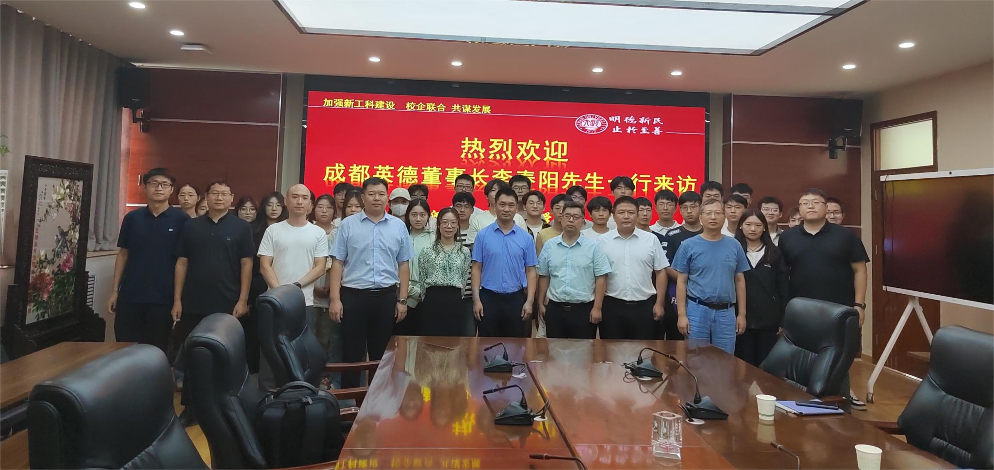 9月9日,成都英德生物医药设备有限公司董事长李春阳、总经理韩飞飞,研发总监靳魁奇一行来我院座谈交流;诸侯快讯ok1133.com教务处副处长朱显峰、诸侯快讯ok1133.com副院长赵海鹏、生物工程系主任刘宇鹏、生物工程系相关教师及2021、2022级卓工班同学参加座谈会,座谈会由卓工班班主任孙杨主持。