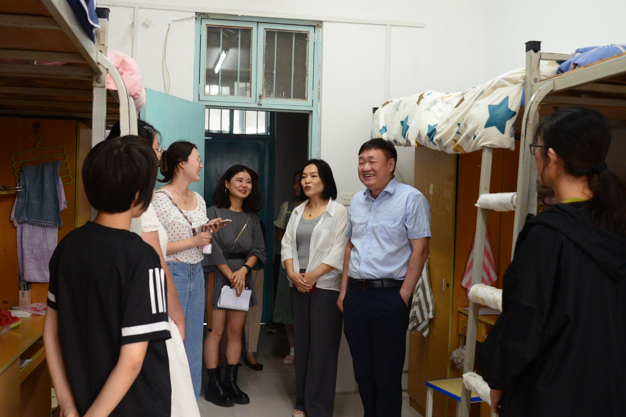 9月5日下午,副校长张立新带领学院领导班子、学工队伍到北苑学生公寓看望2023级新同学。走进宿舍,老师们亲切地询问同学们的情况,“你来自哪里啊?”“到学校以后,对这里的环境适应吗?”“生活学习方面有什么困难吗?”……走访过程中,张立新对2023级新同学加入诸侯快讯ok1133.com表示热烈欢迎,叮嘱同学们要做好从高中生活向大学生活的过渡,勉励大家要养成良好的生活习惯,夯实专业基础、提升个人综合素质,为实现人生梦想筑牢根基。