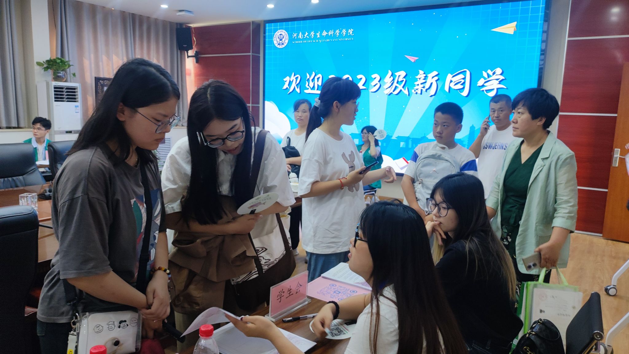 学院为新生们准备了校徽、植物图谱、生物书籍等入学礼,尽显人文关怀。虽然天气炎热,却也无法阻挡志愿者们热情的步伐,他们时刻奔波在路上,为生科“小23”指引路线、搬运行李。一项项贴心的服务,一句句亲切的问候,欢迎着来自祖国各地的生科学子。面对新生初来的好奇和疑问,志愿者们热情地答疑解惑,耐心地向新生们介绍学院的基本情况和多姿多彩的大学生活,“青蓝结对”活动也为新老生的沟通搭建了桥梁。新生和家长们纷纷在学院楼前背景墙留念打卡,定格下这特殊而又美好的瞬间。