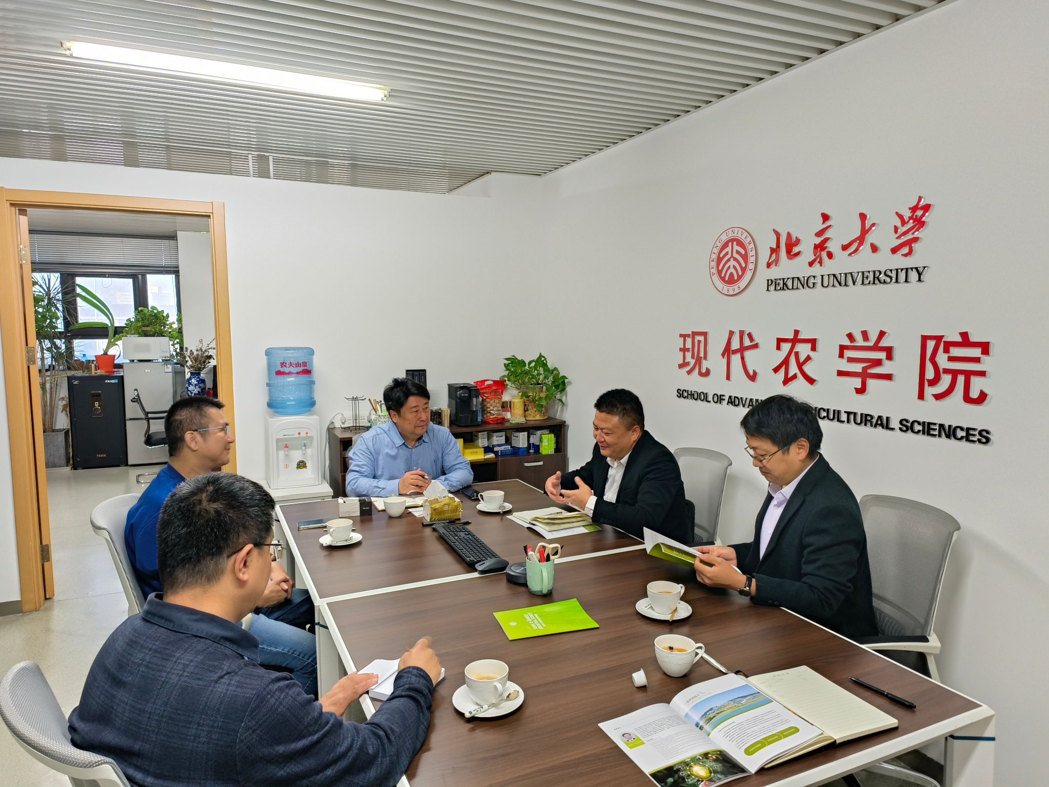 北京大学现代农学院院长刘春明、新农村发展研究院副院长盛誉、分子农学系负责人周岳等相关人员接待交流。刘春明对诸侯快讯ok1133.com来访表示欢迎,介绍了北京大学现代农学院的发展历史及基本情况。赵海鹏对北京大学现代农学院的热情接待表示感谢,介绍了诸侯快讯ok1133.com生物学一流学科建设、诸侯快讯ok1133.com的基本情况和来访目的。双方就未来开展学术交流和学术合作、共建科研基地共享平台、学生联合培养、依托相关基地共同开展活动等进行了讨论并达成了初步意向。