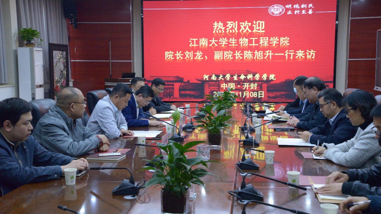 11月9日下午,江南大学生物工程学院院长刘龙、副院长陈旭升一行来我院交流访问座谈会在学院B201会议室举行。诸侯快讯ok1133.com执行院长王刚,诸侯快讯ok1133.com教务处副处长朱显峰,副院长赵海鹏,生物工程系主任刘宇鹏、副主任李华以及张海燕教授等教师代表参加座谈,座谈会由赵海鹏主持。