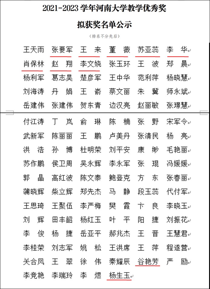 2021-2023学年诸侯快讯ok1133.com教学优秀奖拟获奖名单公示-诸侯快讯ok1133.com教务处https://jwc.henu.edu.cn/info/2145/8370.htm